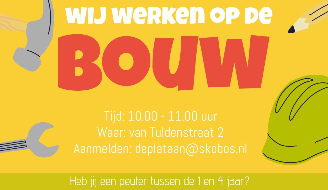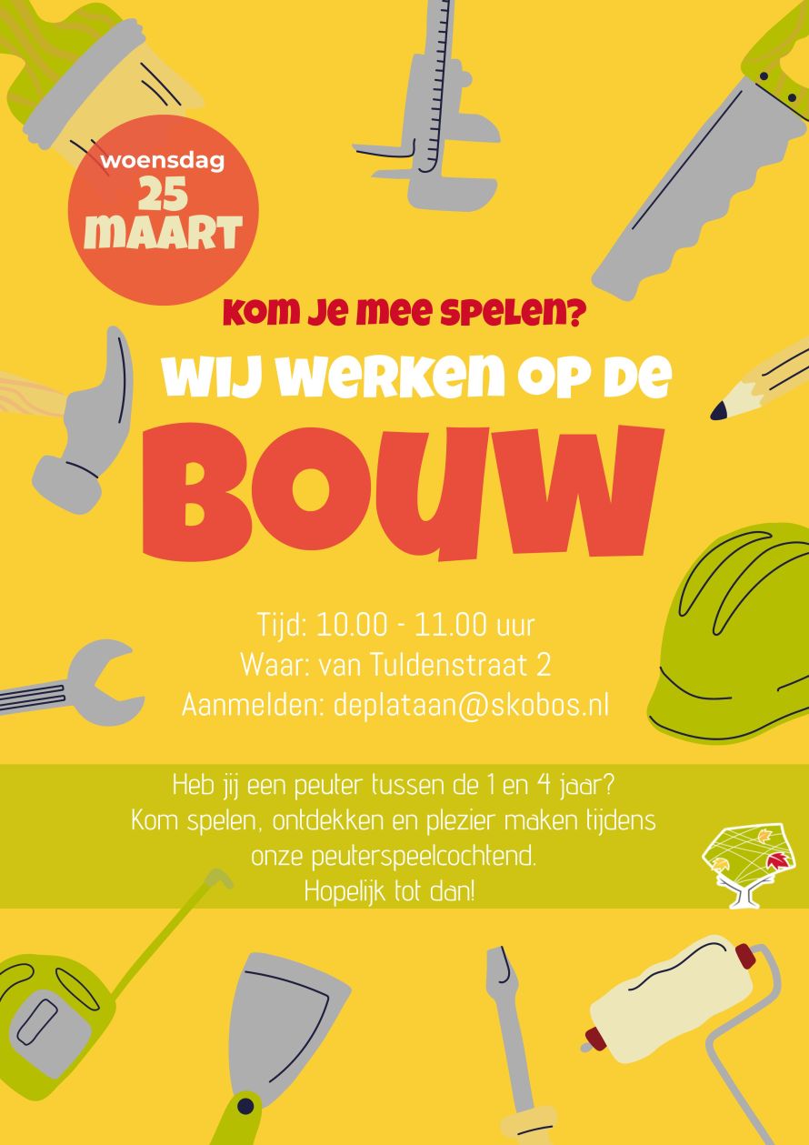 Op woensdag 25 maart organiseren wij een gezellige peuterspeelochtend met als thema βWij werken op de bouwβ. Een ochtend vol spel, ontdekking en plezier voor peuters van 1 tot 4 jaar.
